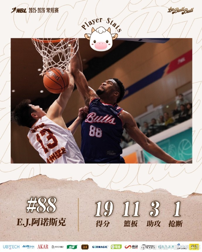 香港金牛重返荃湾主场,战胜贵州猛龙拿到十三连胜。本场比赛,全队五人得分上双:阿诺斯克多次上演精彩暴扣,贡献19分11篮板3助攻与1抢断;刁展望攻防一体,拿下15分3助攻和3抢断;港将吴委峻手感火热,三分6投4中高效得到12分2篮板及1抢断;厄特尔稳定输出,得到12分4篮板2助攻和2抢断;董健则凭借犀利的突破与外线投射,取得11分4助攻1篮板及1抢断。...